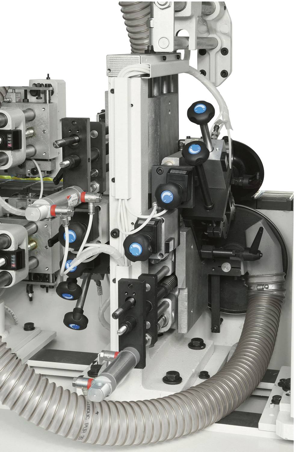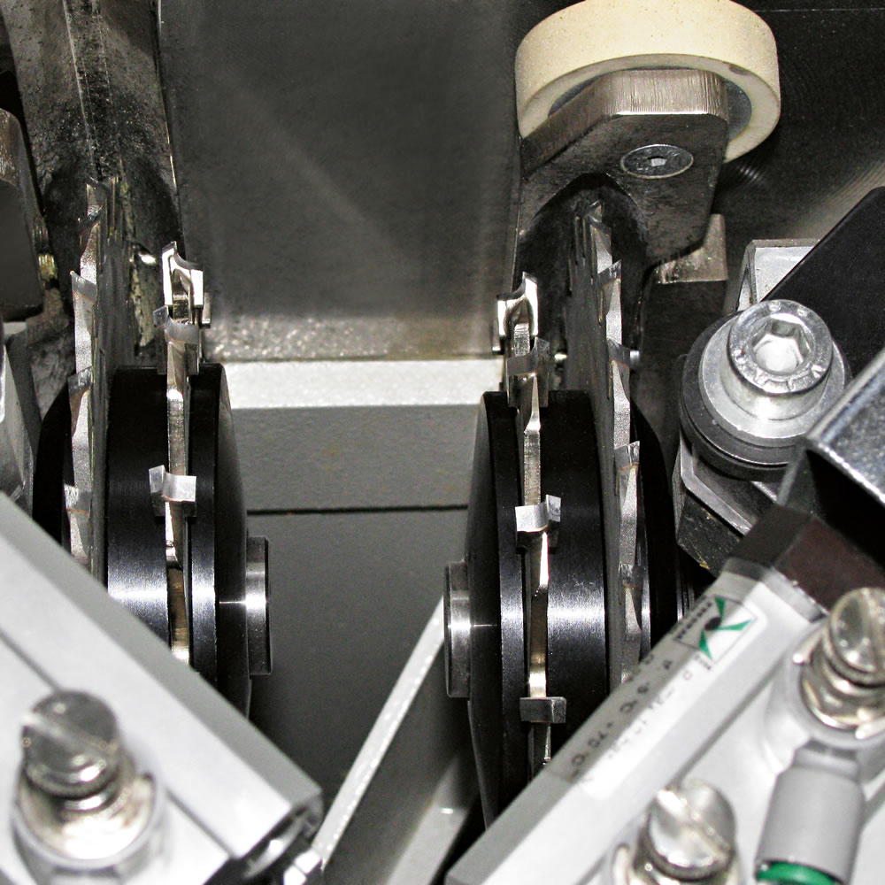 | Trimming unit: 3 different machining. Rapid machining changeover between thin, thick and solid wood edges due to the 3 working positions and the «Combi» tool supplied as a standard feature. |