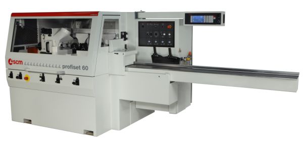 Cepilladora/perfiladora automática hasta 6 ejes, disponible en cuatro composiciones con posibilidad de equipamiento para el perfilado sobre el eje horizontal superior (opcional)