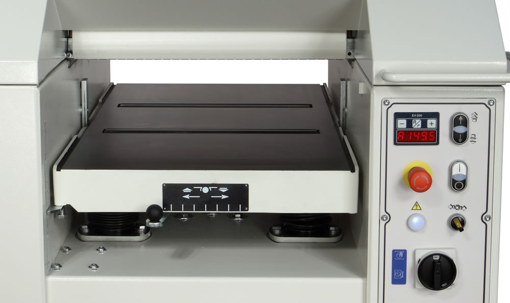 | Great operating comfort: powered height adjustment of the thicknessing table with display. For demanding machinings, it is available the thicknessing table with two removable idle rollers (option). |