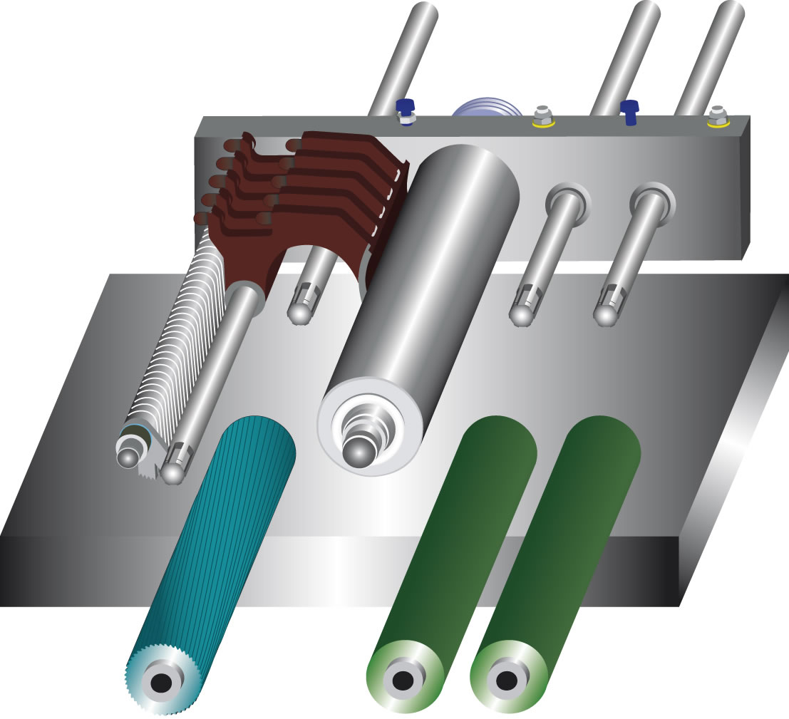 | Mejor acabado con los rodillos de arrastre sobre bielas. La detención de la pieza y la presencia de muescas son obligatorios gracias al sistema de movimentación sobre las biellas y tres rodillos que permiten el movimiento vertical a través de la rotación y la perfecta linealidad de arrastre. |