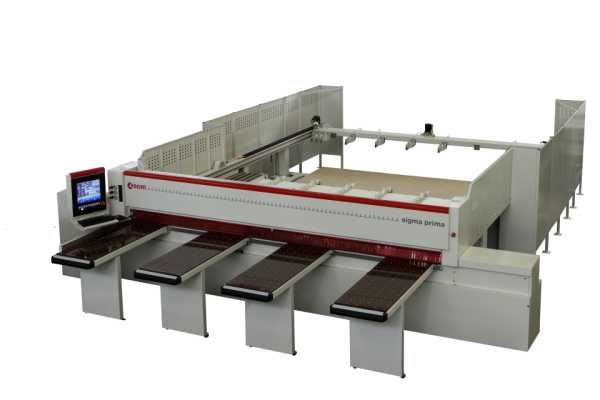 Monosierra gestionada desde control PC/PLC destinada al corte de los paneles de madera y sus derivados (aglomerado, MDF, multicapa, contrachapado, fibra, ecc.)